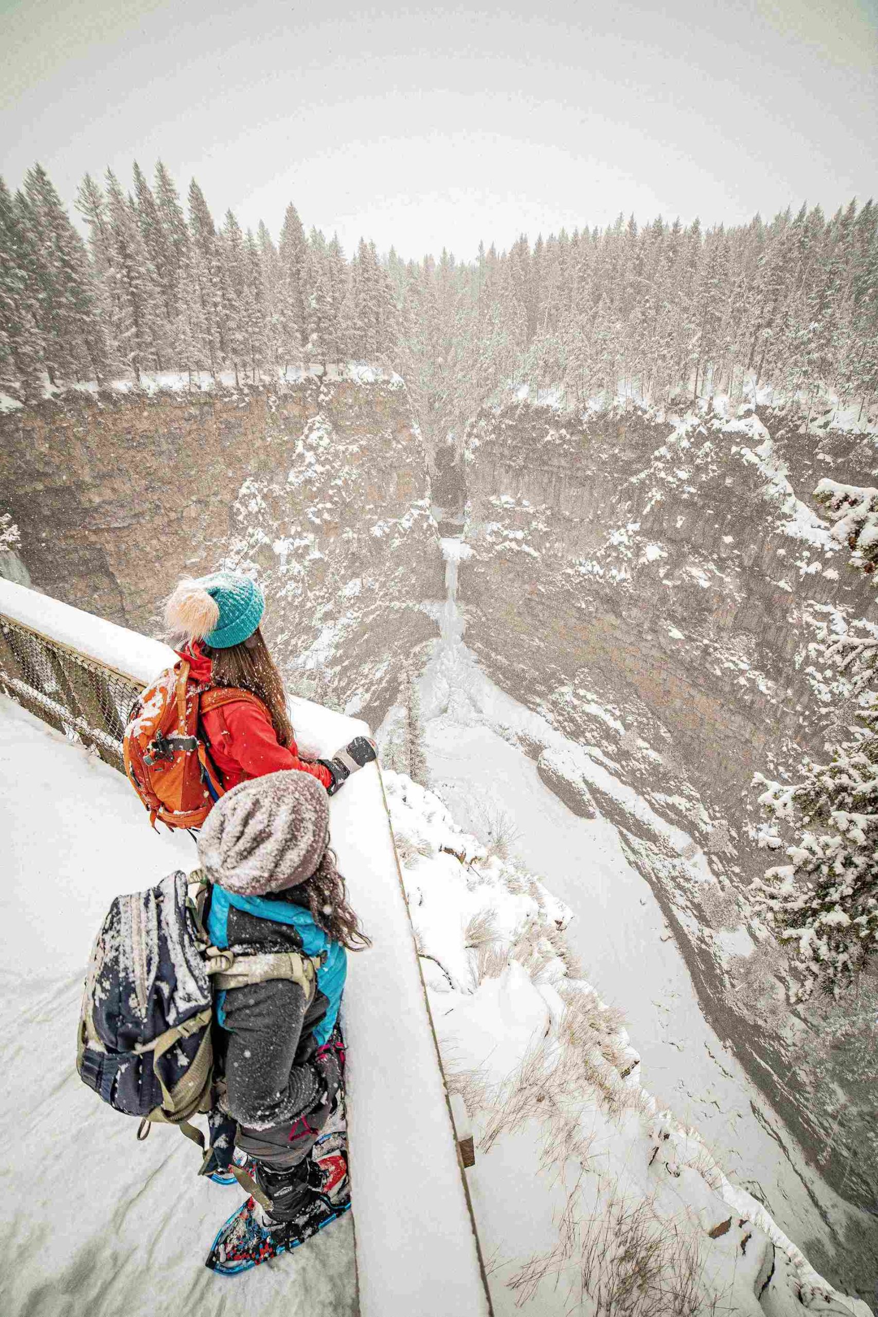 If you could picture a Narnia-like wonderland in Canada, Wells Gray Provincial Park in the winter is it. With 41 named waterfalls and counting, each one takes a different shape when it comes to winter, and this is best seen on a self-guided winter waterfall tour. Nowhere else in western Canada can compare to the number of dramatic and ice-defying frozen and unfrozen waterfalls that are easily accessed by a short hike or snowshoe in. (We recommend bringing a pair of snowshoes as the snow can get deep.) A few of our favourite winter waterfalls include Spahat’s Falls (and snowshoeing the Spahat’s Forest Loop), Triple Decker Falls, Dawson Falls, and Helmcken Falls.
